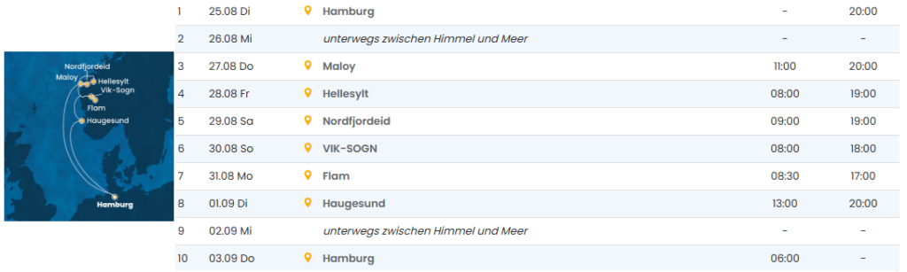 2026年8月25日~9月3日 10日間 / ハンブルグ発着