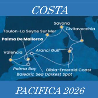 サルディーニャのオルビアや 欧米人のハワイ的な感覚のスペイン マヨルカ島へ寄り 夏のバカンスを楽しめるコースです!COSTA パシフィカの船内詳細:こちらヴ…